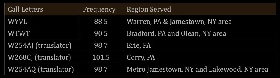 The bread and butter of every radio ministry are the physical transmitters, towers, and antennas that make is possible for people to listen to broadcasts on a physical radio. We love those! In fact, here are the coverage maps for our five frequencies. But the REAL STORY is below the maps!